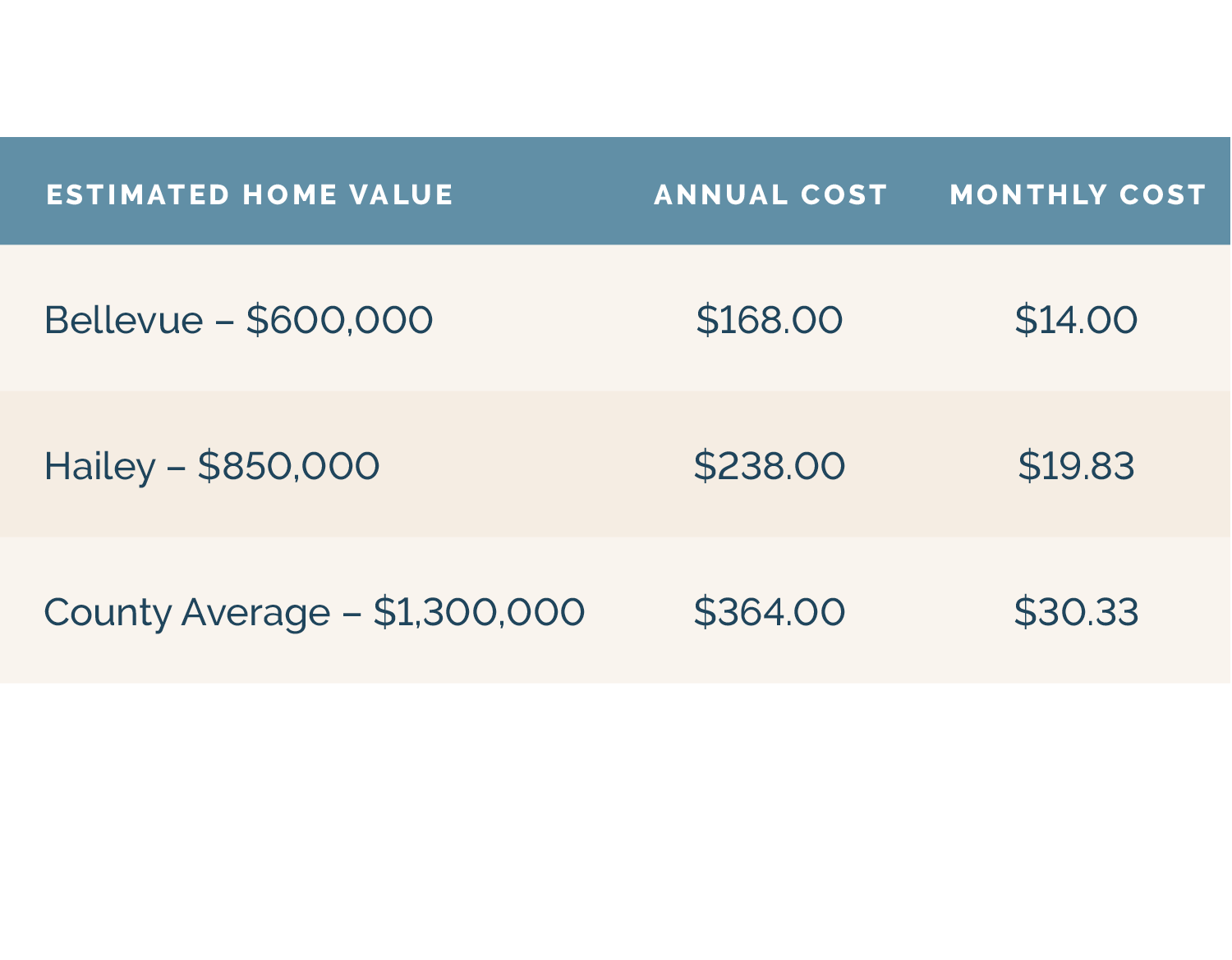 Estimated levy: $28 per $100,000 of taxable value (after Idaho Homeowner’s Exemption)